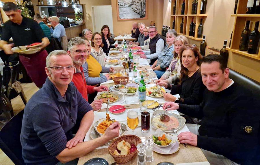 Regelmäßig treffen sich WVS-Mitglieder um 18:30 Uhr in einem Restaurant und verbringen einen entspannten Abend bei Speis und Trank.